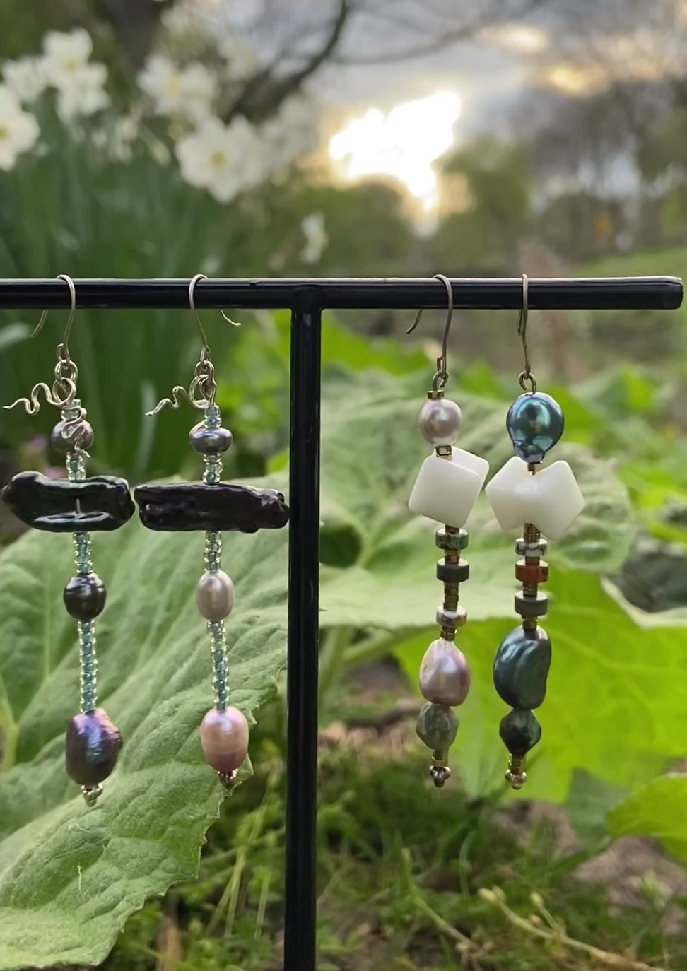 Silver earrings with natural crystals 💎  stones  🗿 freshwater baroque pearls 🦪 and glass beads ðŸ’