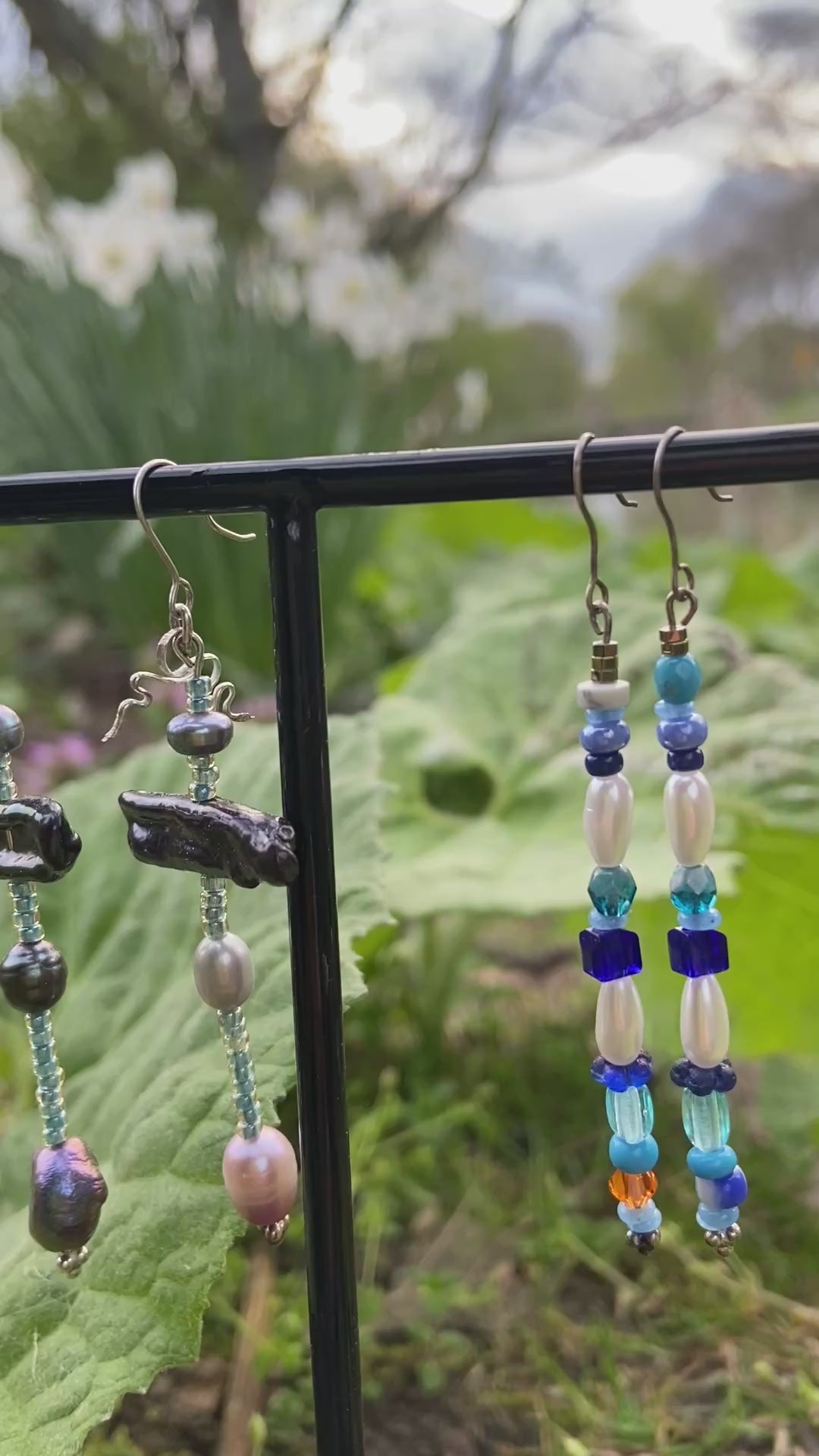 Silver earrings with glass beads 💠 abalone & baroque pearls 🐚💧 silver handbend snake pendant